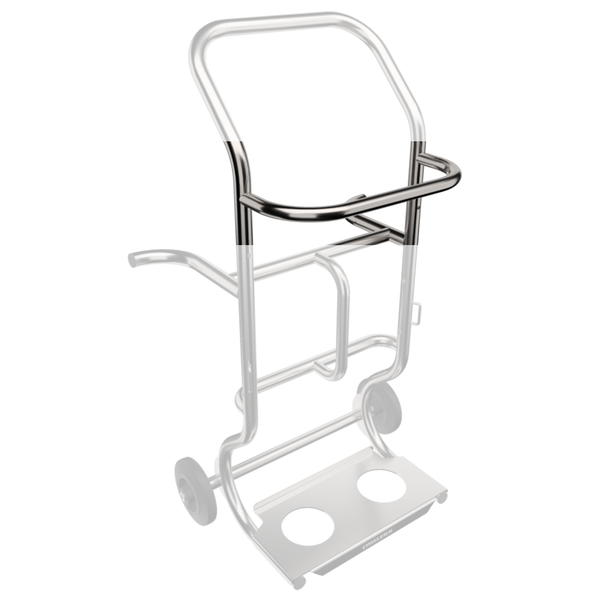 Stainless steel trolley from the PRO series designed for two air bottles (15 / 18 L). Features an ergonomic design and a robust, compact frame made of polished stainless steel, ensuring durability and a professional appearance. Large 160 mm wheels allow effortless handling, even in challenging environments. The air regulator is securely positioned to protect it from damage in case of accidents, including protection for the gas cylinder valve.