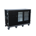 CATERING BEVERAGE box with a refrigerator for cooling drinks. On the left side of the box you will find two drawers and one large compartment, for example for storing a coffee machine. Dimensions 1500x600x1080mm in the transport version. The box is equipped with 8 heavy duty castors.