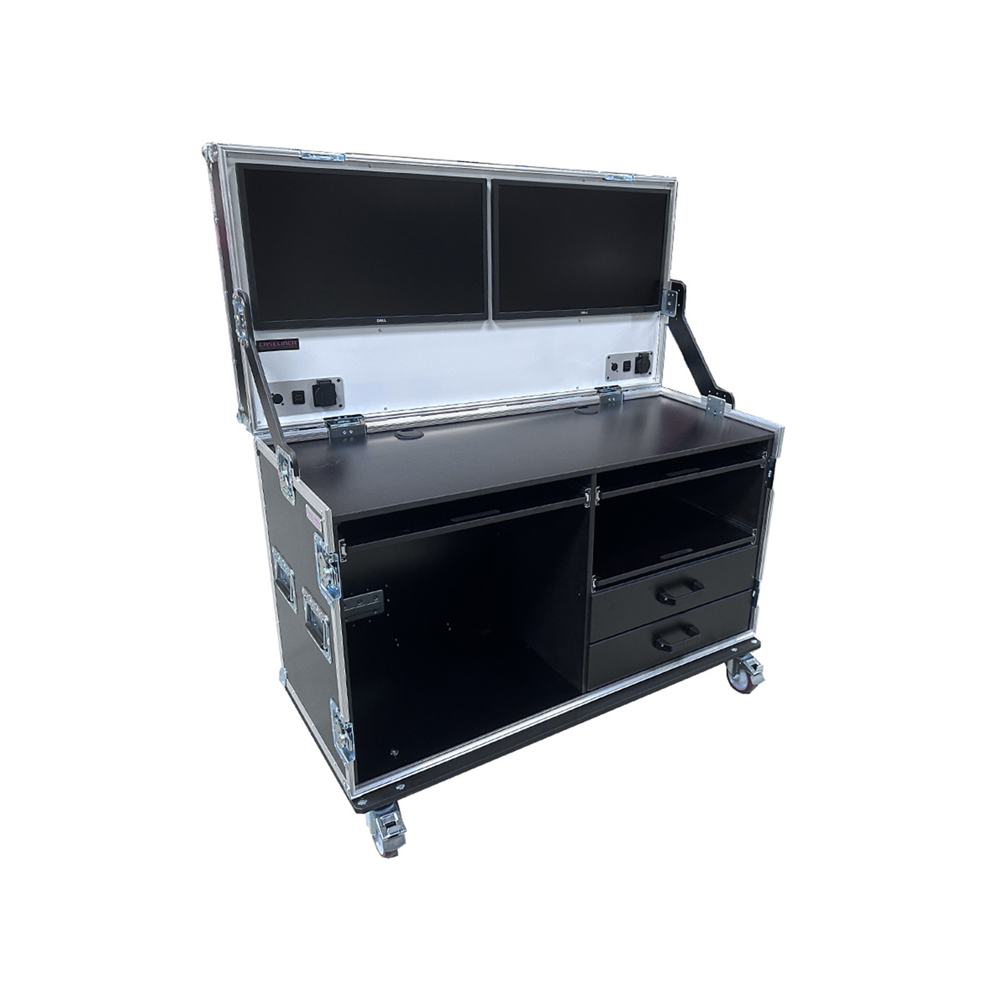 The mobile office DATA CASE 2 is applicable in various fields. The case has locking lids, in which PC monitors are placed.