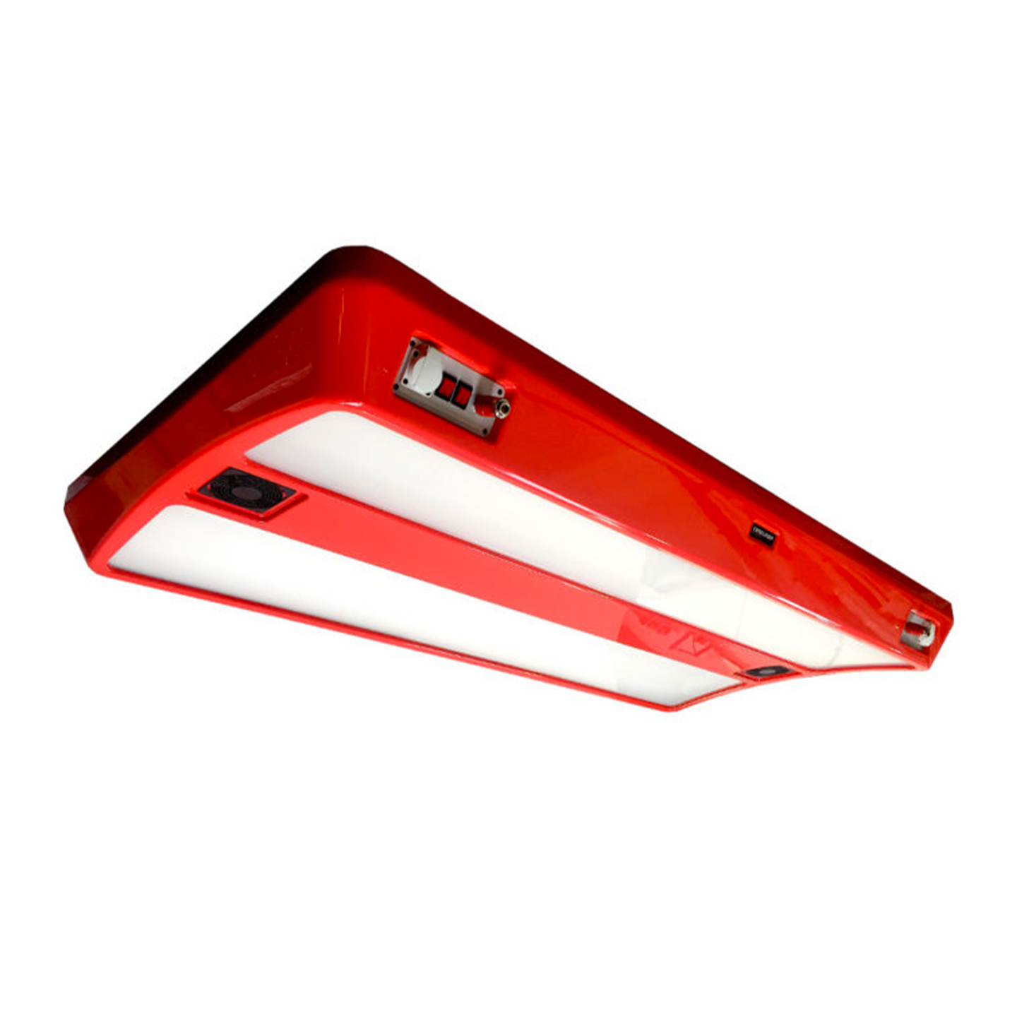 The Special POWERHOOD S200 is made for lighting the interior of racing-car garages, lighting over the car itself, motorbike or in the workshops. Light construction, high luminosity together with a practical and elegant design are great features of this product. The POWERHOOD is also possible to be fitted with air distribution, following the customer’s request and specifications. We offer two models in 16AMP and 32 AMP versions.