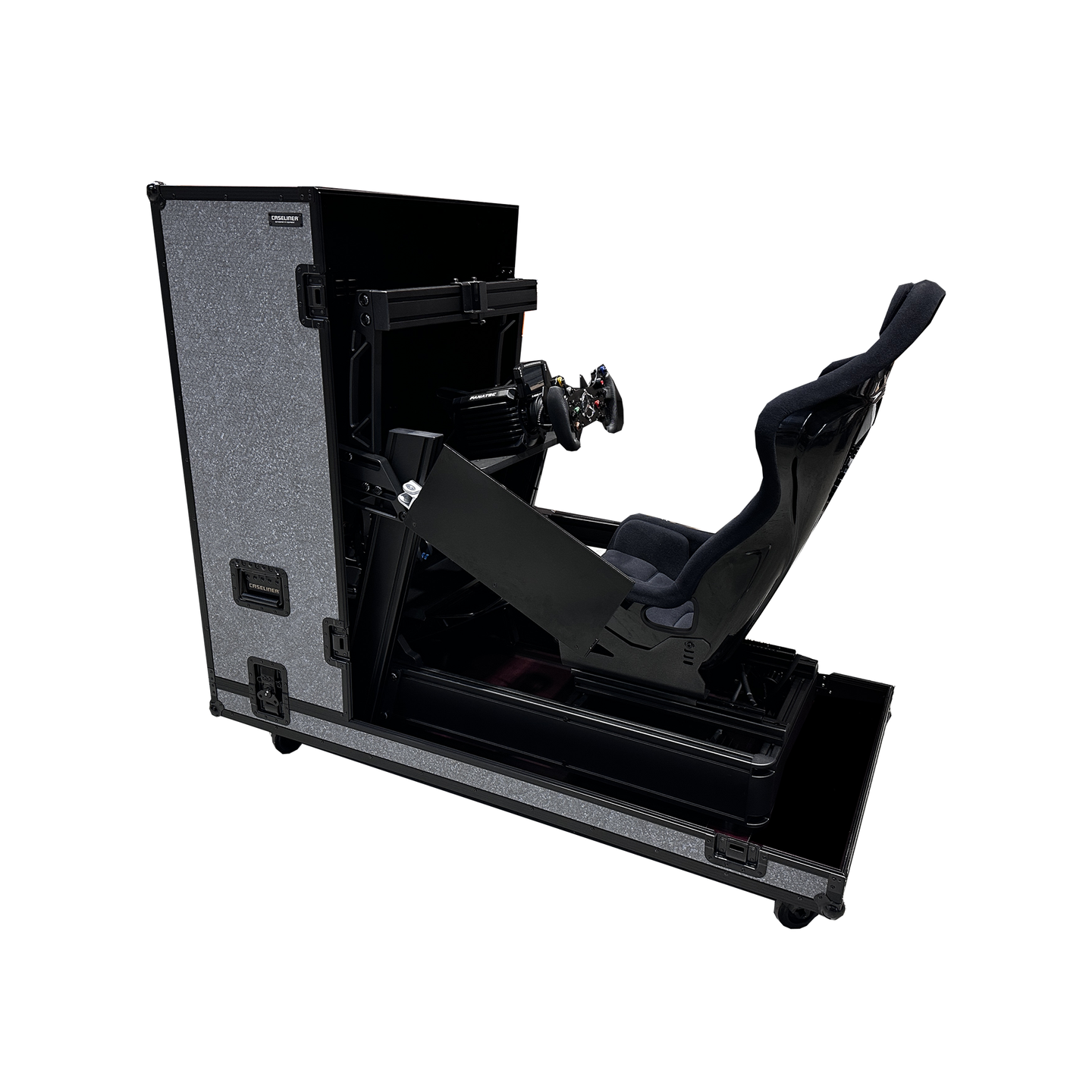 A professional transport box designed specifically for SIM Racing consoles. Thanks to the robust metal frame, the console can be placed directly on the floor of the case and does not need to be removed during use.