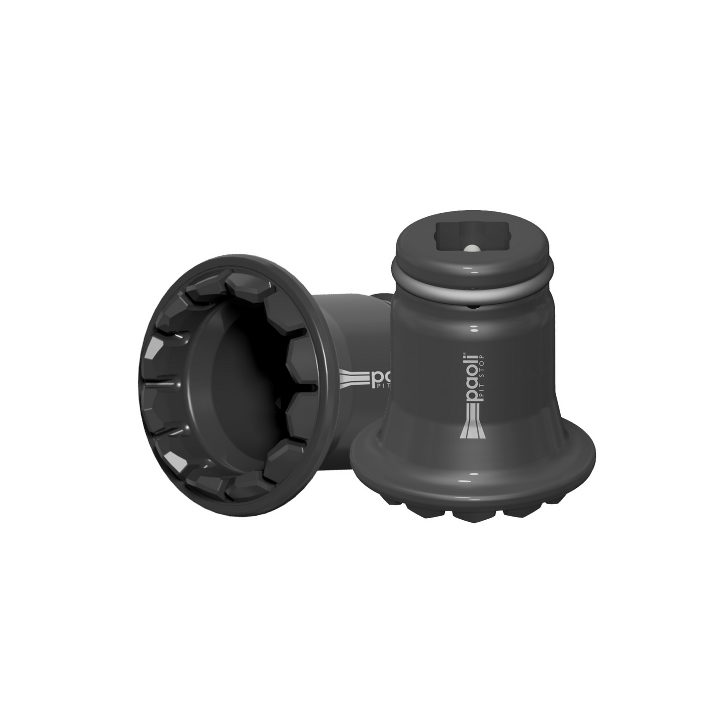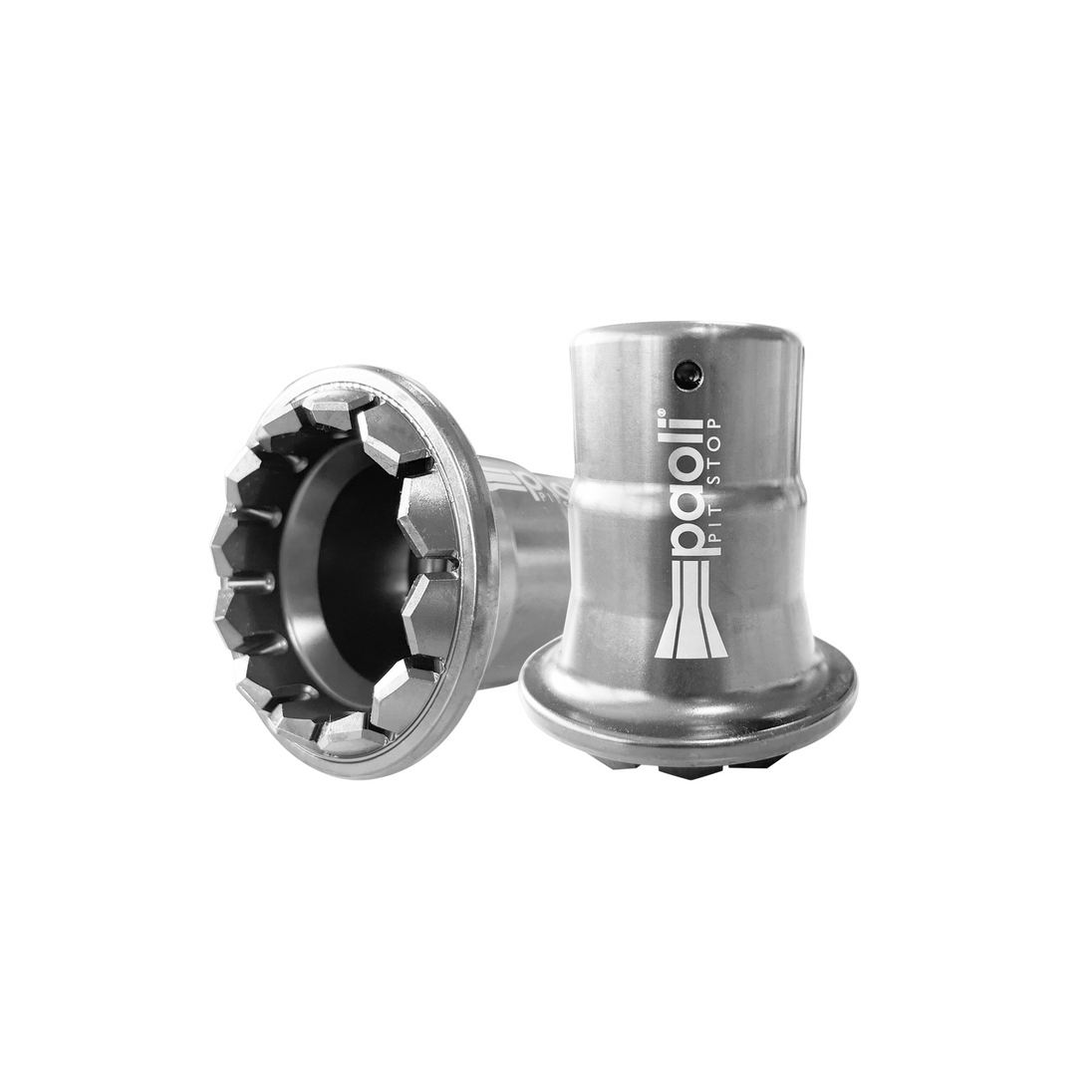 Paoli wheel sockets for the F488 and F296 are precision-engineered components developed for high-performance motorsport applications. These sockets are available in multiple drive types and materials to match various pit stop strategies, performance requirements, and durability expectations. Whether you need the strength of 300M steel, the weight reduction of Grade 5 titanium, or the lightweight simplicity of 7075 aluminum alloy for torque wrench applications, each socket ensures a perfect fit, minimal vibration, and optimal energy transfer. Paoli’s spline technology offers superior engagement compared to traditional square drives, reducing wear and enhancing operator safety. These sockets are built to meet the real-world demands of professional racing.