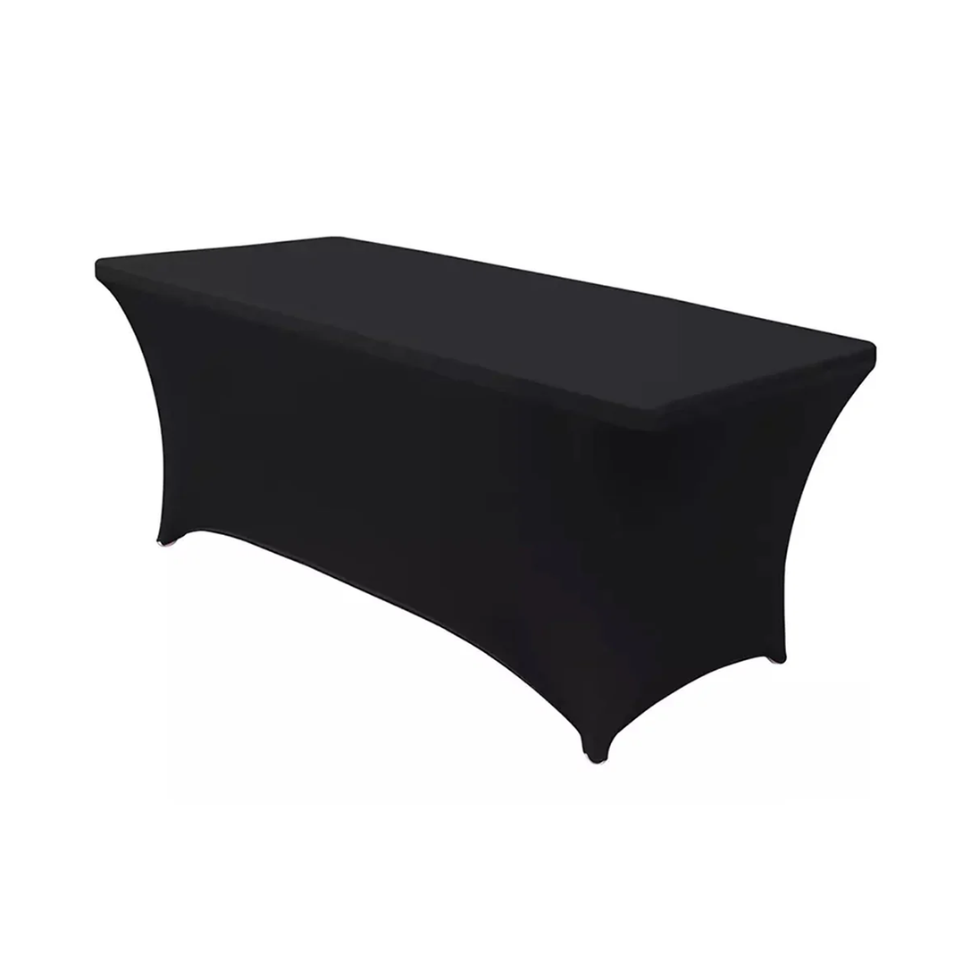 Elastic textile covers designed to fit folding tables, providing a clean and elegant look for hospitality, catering, or event use. Made from stretch material to ensure a tight fit and professional appearance. Available in white or black color options to match different setups.