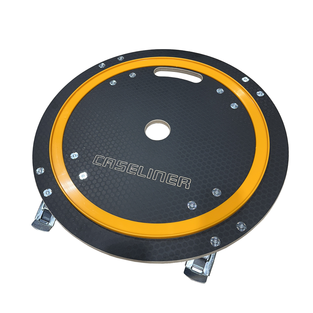 Robust tyre board with a diameter of 620 mm, designed for convenient storage and movement of wheels. Equipped with 2 fixed and 2 braked swivel wheels, offering excellent stability and manoeuvrability even under load. Built to handle up to 250 kg, making it suitable for both workshop use and trackside operations.